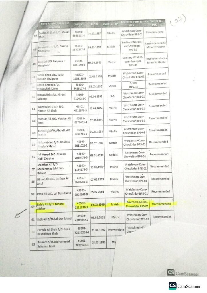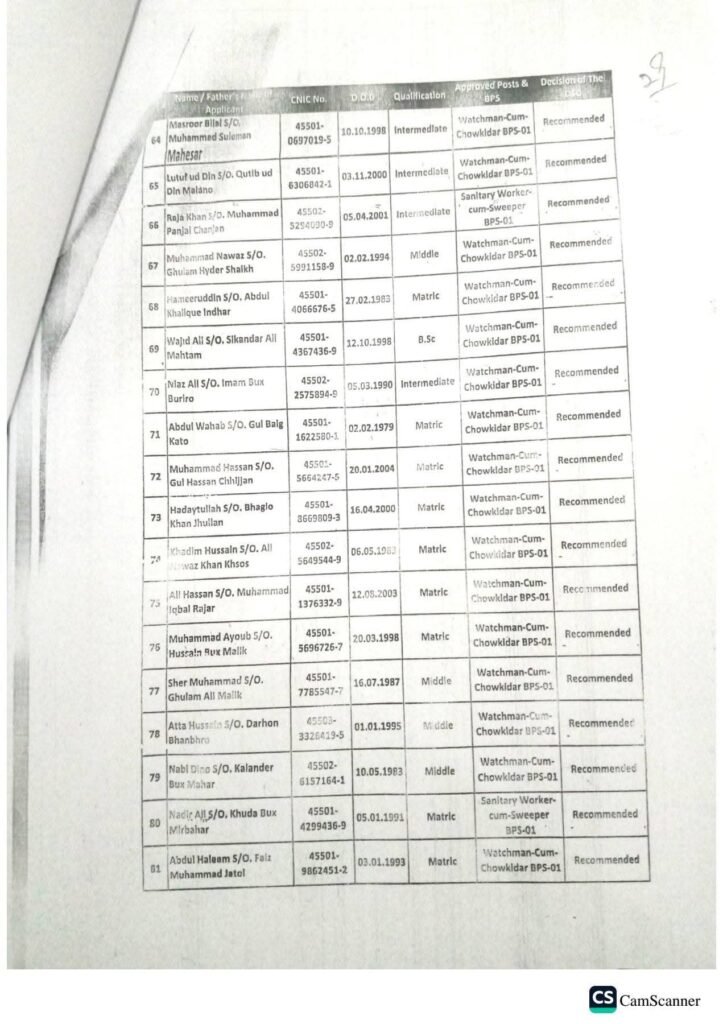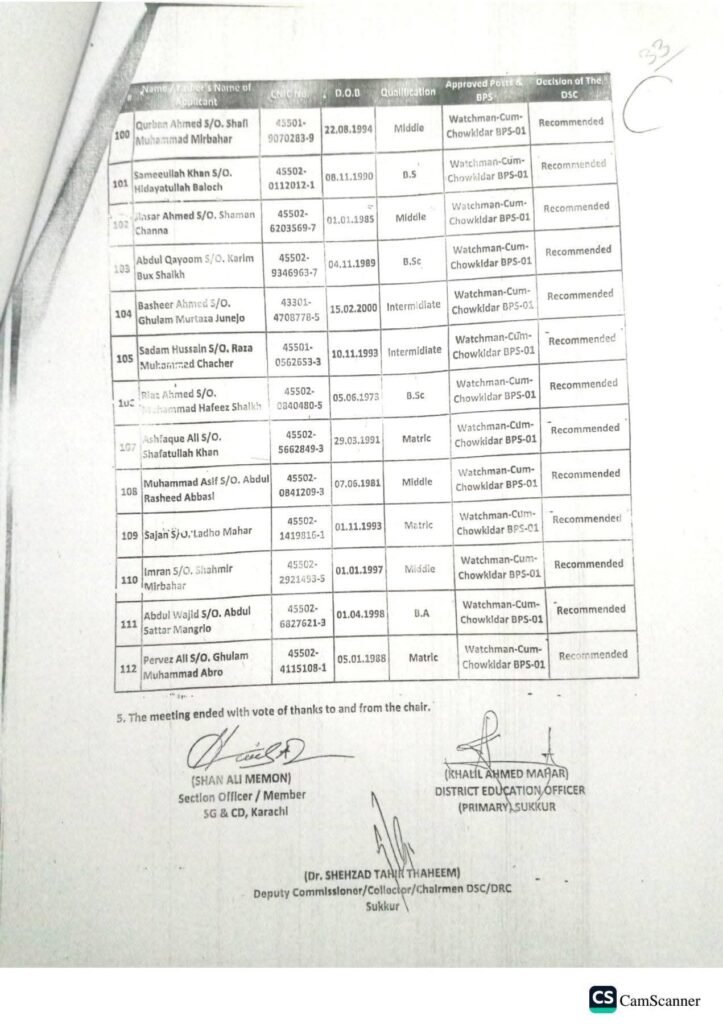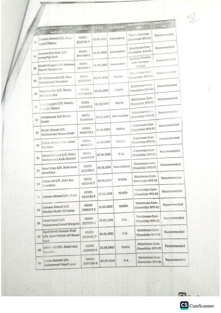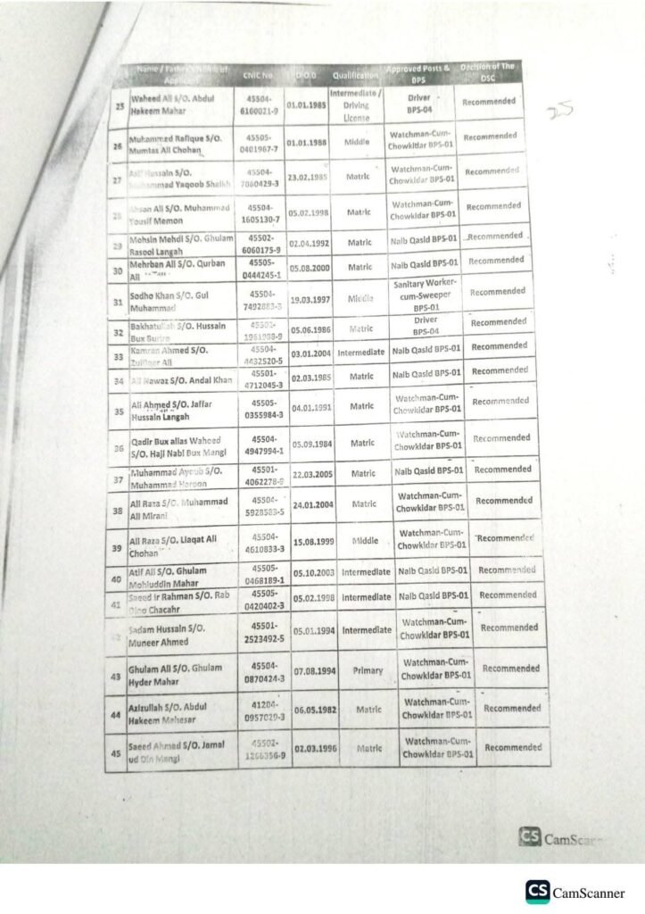 Grade 01 to 04 Candidates List – Education Department (Primary Side)